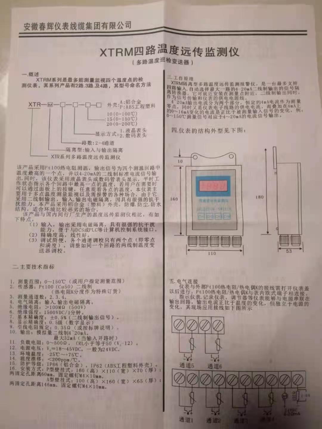 XTRM四路溫度遠(yuǎn)傳監(jiān)測儀